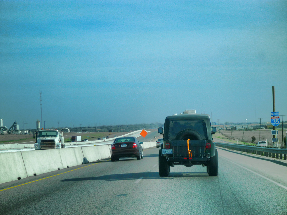 Our drive to Dallas started Cannon Ball style, we had to check our options quick, plan fast and run for the time we had in our hands. We also had to multitask and started at the same time to clean the rental house (I watched), check what we needed for the run, go to Wally world, get bungee cords, reflective tape, back to the house throw trash away give the neighbors some furniture, load the Jeep and go. UUUUFFFF! just got tired of thinking of all that. By the way I did help on everything except the cleaning 🙂