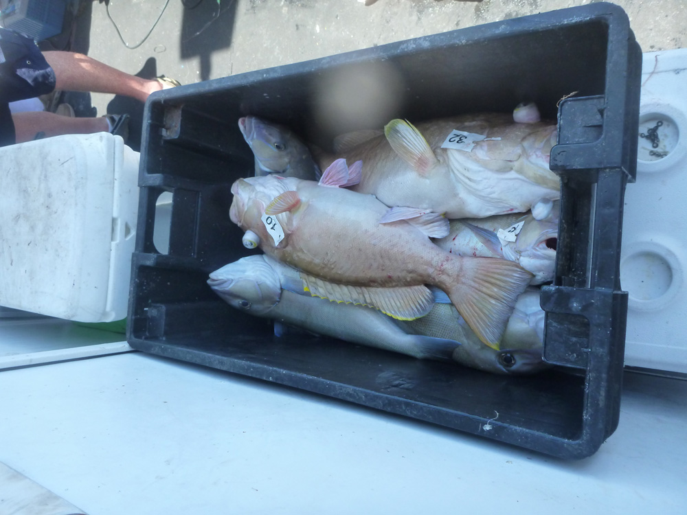 Crate with fish Published May 27, 2014 at 1000 × 750 in Yankee Capts Pulley Ridge Adventure- Deep Drop May 2014- JIG AND CRANK! ← Previous Next →